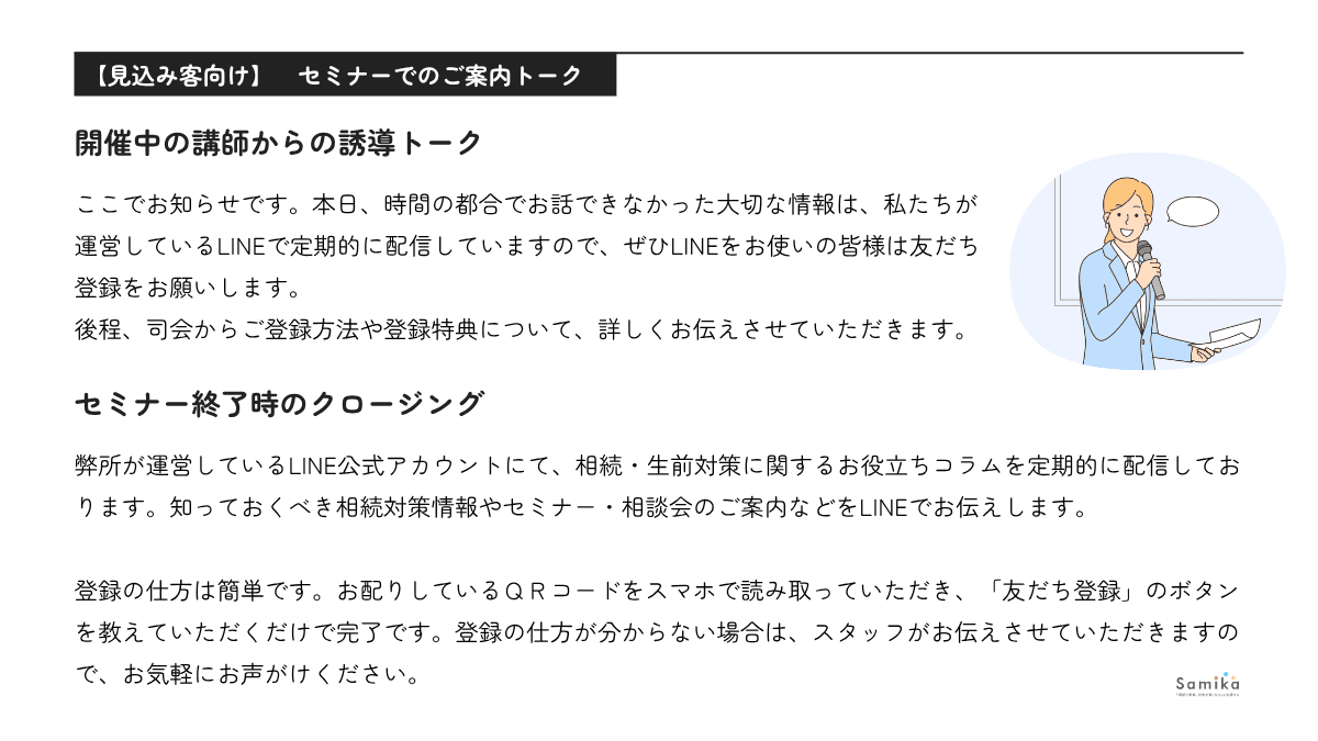 ☑ セミナーや相談会で、どう案内すればよいか分からない